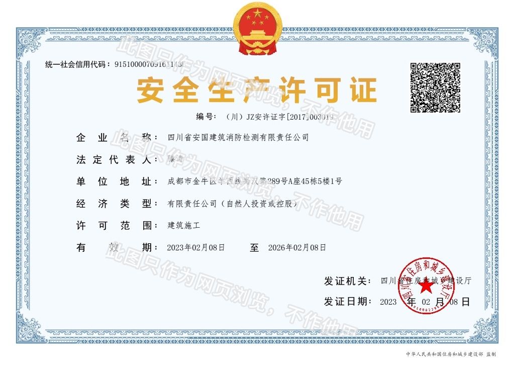 四川省安國(guó)建筑消防檢測(cè)有限責(zé)任公司,成立于1998年,經(jīng)四川省公安消防總隊(duì)批準(zhǔn),工商部門(mén)注冊(cè)的獨(dú)立法人單位。 公司具有建筑消防設(shè)施檢測(cè)、電氣防火安全檢測(cè)、維修、保養(yǎng)及技術(shù)咨詢(xún)一級(jí)資質(zhì)的中介技術(shù)服務(wù)機(jī)構(gòu),獲得CMA計(jì)量認(rèn)證。主要業(yè)務(wù)范圍是:接受建設(shè)單位或有關(guān)單位委托,承擔(dān)新建、改建、擴(kuò)建建筑自動(dòng)消防設(shè)施技術(shù)檢測(cè)、電氣防火安全檢測(cè)、以及承接建筑消防設(shè)施維護(hù)保養(yǎng),對(duì)已交付使用的建設(shè)消防設(shè)施的運(yùn)行情況進(jìn)行運(yùn)行檢測(cè),開(kāi)展建筑消防設(shè)施的消防安全技術(shù)咨詢(xún)。公司設(shè)辦公室、總工辦、財(cái)務(wù)部、檢測(cè)部、維保部等職能機(jī)構(gòu),擁有一